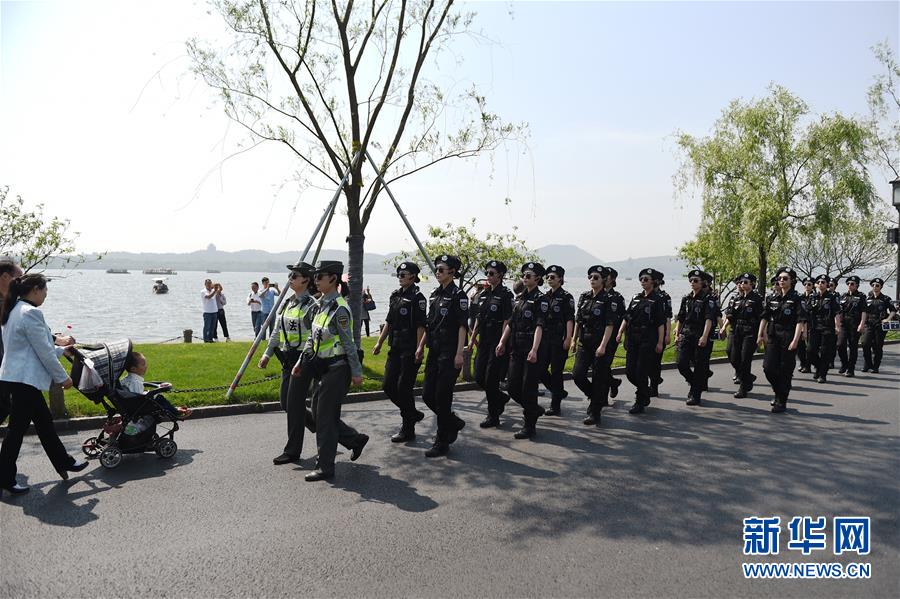 5月1日,杭州西湖景區(qū)行政執(zhí)法局女子巡邏隊(duì)在西湖白堤列隊(duì)巡邏。