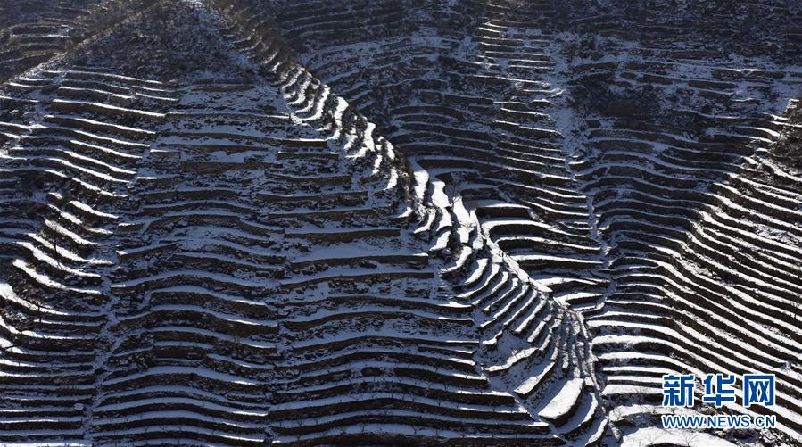 這是12月27日拍攝的涉縣王金莊梯田雪景。連日來,河北涉縣普降小到中雪,雪后的涉縣梯田美景如畫。 新華社記者王曉攝