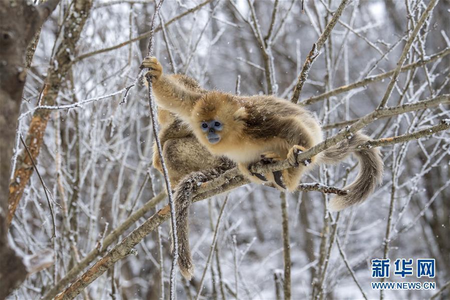 1月10日,在湖北省神農架大龍?zhí)督鸾z猴保護基地,一只金絲猴在樹林中行走。經過動物保護人員的多年努力,加之生態(tài)環(huán)境的不斷改善,湖北省神農架金絲猴得到有效保護。目前,神農架金絲猴數量比20世紀80年代最少時增加了一倍多。新華社記者 杜華舉 攝 圖片來源:新華網