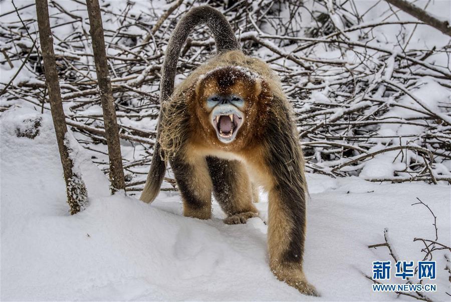 1月10日,在湖北省神農架大龍?zhí)督鸾z猴保護基地,一只金絲猴在樹林中行走。經過動物保護人員的多年努力,加之生態(tài)環(huán)境的不斷改善,湖北省神農架金絲猴得到有效保護。目前,神農架金絲猴數量比20世紀80年代最少時增加了一倍多。新華社記者 杜華舉 攝 圖片來源:新華網 -