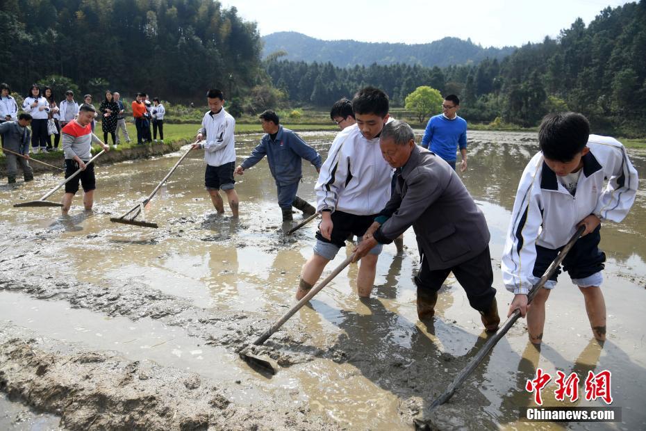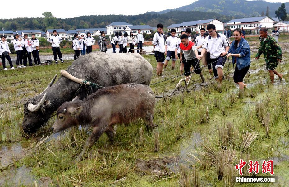4月3日,江西新余市渝水區(qū)良山鎮(zhèn)推出“農(nóng)耕文化體驗游”活動,來自江西省新余市第六中學的學生們走進田間地頭,學習犁田、育秧等農(nóng)活,體驗農(nóng)耕文化,感受稼穡之艱。周亮 攝