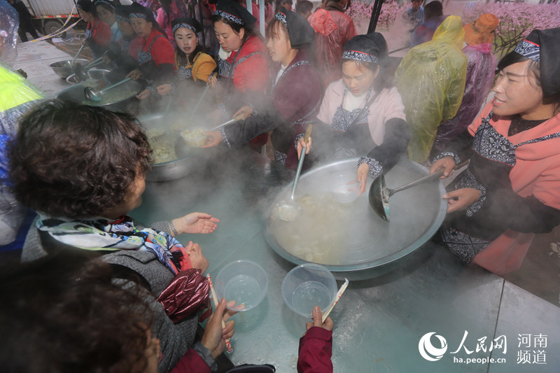 4月9日,河南欒川陶灣鎮(zhèn)一景區(qū)免費向游客發(fā)放餃子,雖然天下著大雨,但是陸續(xù)吸引千余名游客自覺排隊等候品嘗免費的午餐。“餃子宴”場面壯觀,據(jù)了解當(dāng)天景區(qū)免費送出的餃子達(dá)一噸有余!