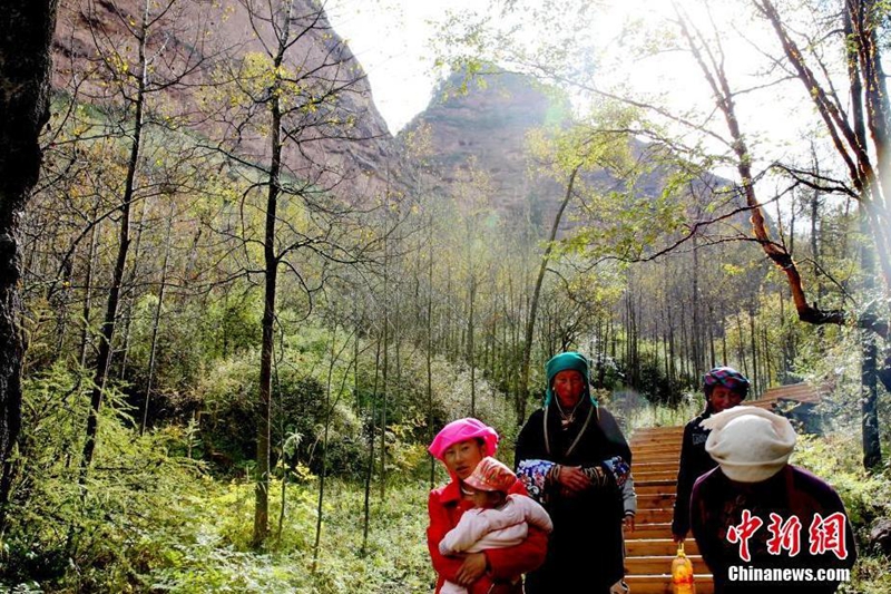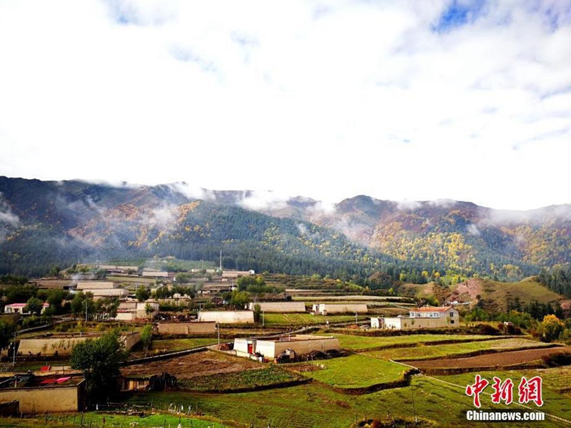 9月30日,在青海省東南部的坎布拉國家地質公園,一場秋雨過后,煙霧繚繞,恍如人間仙境?膊祭は嫉孛惨跃薹、方山、洞穴、峭壁為主,還有帷幕式地貌和蜂窩地貌,是藏民族的傳統(tǒng)棲息地,也是藏傳佛教復興發(fā)達重要之地,是國家級森林公園、國家級地質公園、國家級水利風景名勝區(qū),優(yōu)美風景加之獨特文化內涵,吸引大批游客和攝影家舉起鏡頭,參加當?shù)嘏e辦的青?膊祭糜螖z影節(jié)。圖為?膊祭刭|公園內的巨峰。張?zhí)砀?攝 -