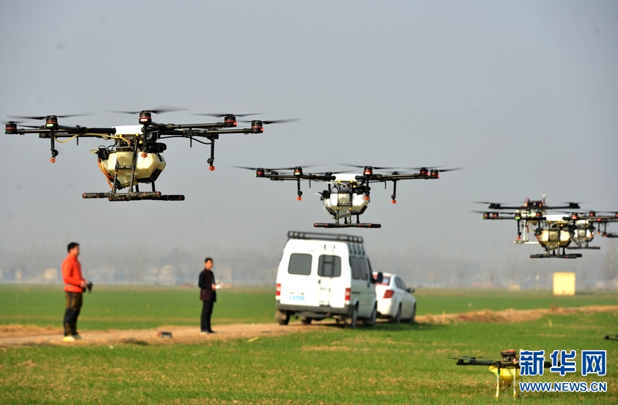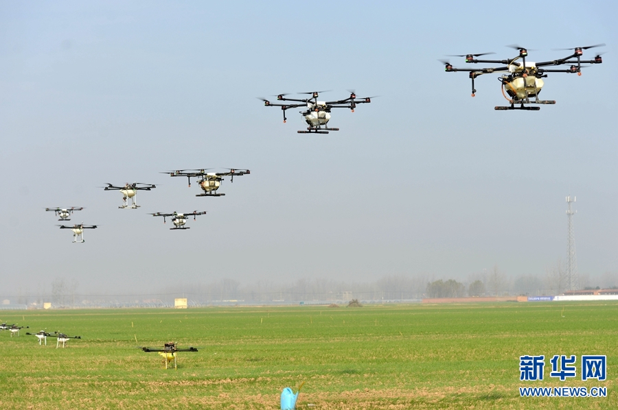 11月21日,在河南省夏邑縣胡橋鄉(xiāng)新橋村,植保無人機(jī)編隊(duì)飛手們在進(jìn)行無人機(jī)飛行演練。今年以來,河南省夏邑縣胡橋鄉(xiāng)新橋村村民朱希望聯(lián)合本村十幾個(gè)貧困戶,一次性購置30臺無人機(jī),他們組成植保無人機(jī)編隊(duì),為全國各地的種植專業(yè)合作社和種植大戶的農(nóng)作物提供有償噴藥作業(yè)服務(wù)。村民在為農(nóng)業(yè)增效提供保障的同時(shí),也開辟了一條脫貧致富路。新華網(wǎng)發(fā)(苗育才 尚偉 攝) -