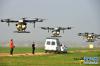 11月21日,在河南省夏邑縣胡橋鄉(xiāng)新橋村,植保無人機(jī)編隊(duì)飛手們在進(jìn)行無人機(jī)飛行演練。 -