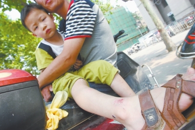 一名小朋友的腳踝部位出現(xiàn)擦傷