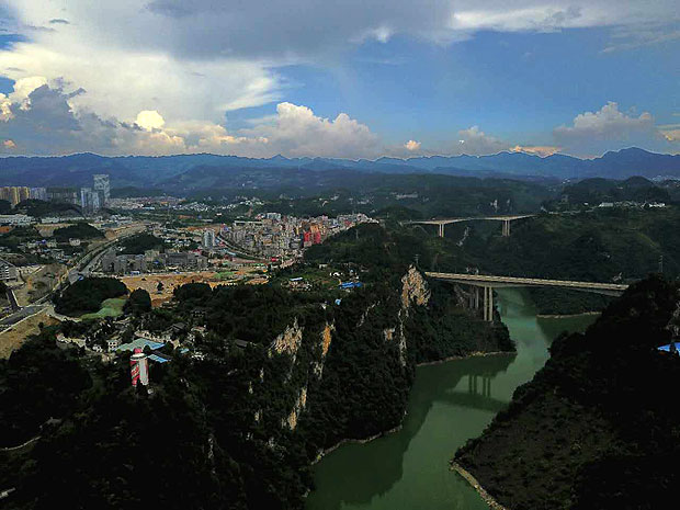 無人機(jī)飛友們在峽谷上空放飛無人機(jī),記錄峽谷自然風(fēng)光及鹽津河大橋、鹽津湖、國酒門、巨型茅臺酒瓶等人文景觀,鏡頭中的風(fēng)光優(yōu)美奇絕、氣勢恢弘。