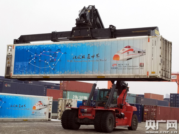 圖為:春節(jié)年貨搭乘中歐班列(武漢)前往德國(guó)漢堡。蘇慶豐 攝