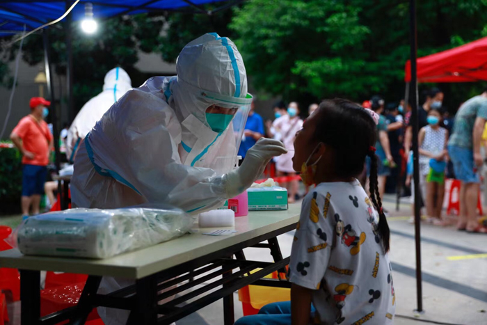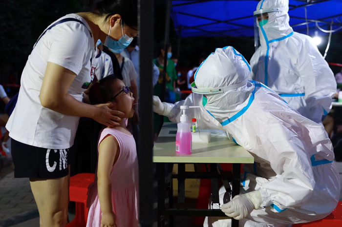 央廣網(wǎng)武漢8月5日消息(記者張卓 通訊員王琛 高琛琛 薛源)3日凌晨至5日,武漢兒童醫(yī)院接到馳援采集核酸的通知,成立核酸采樣應(yīng)急醫(yī)療隊(duì),196名醫(yī)護(hù)人員馬不停蹄分別趕往19個(gè)核酸采樣點(diǎn)。在現(xiàn)場(chǎng),準(zhǔn)備物資、備條碼、登記、采樣、維護(hù)秩序、整理數(shù)據(jù)……為提高采樣效率,與時(shí)間賽跑,各個(gè)崗位的工作人員分工明確,有條不紊地開展核酸采樣工作。