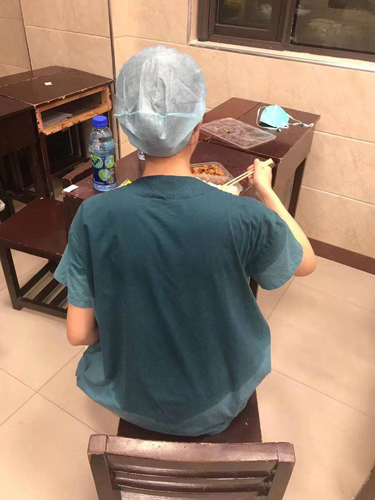 圖為:脫下防護(hù)服,濕透的衣服緊緊附在醫(yī)護(hù)人員身上 央廣網(wǎng)發(fā) 通訊員供圖