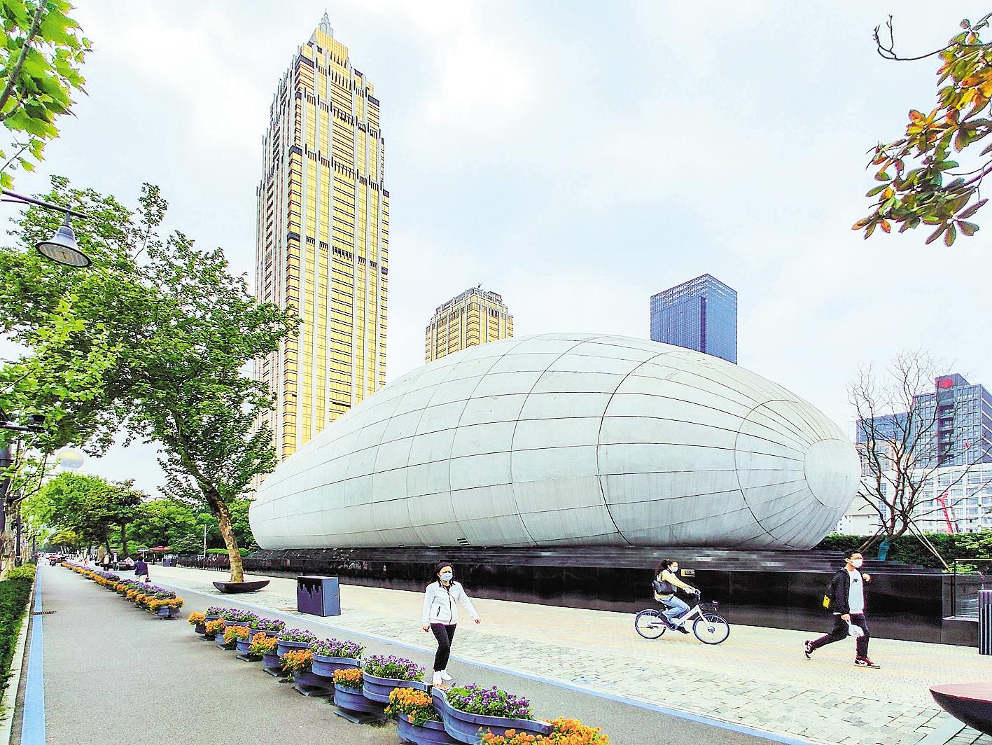 4月25日,在武漢市漢口沿江大道與五福路交會(huì)處,一座長約30米,高約10米的蛋形建筑格外引人注目。這顆“巨蛋”呈水泥灰色,在“巨蛋”西側(cè),有兩部電動(dòng)扶梯通往裝修精美的地下空間。據(jù)了解,“巨蛋”是名為“長江之石”的景觀雕塑,其地下空間,則是“長江之門藝術(shù)展示中心”。未來這里將以自然元素為載體,用藝術(shù)的方式展示長江自然景觀。 (湖北日?qǐng)?bào)全媒記者 梅濤 攝)