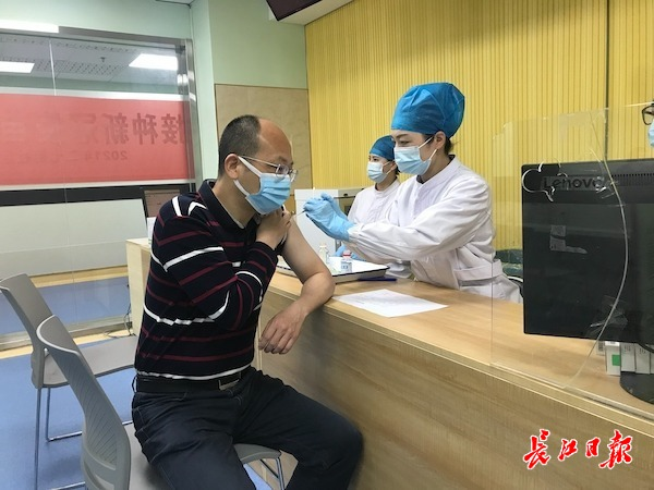 工作人員正在為居民接種疫苗。 長(zhǎng)江日?qǐng)?bào)見(jiàn)習(xí)記者張思敏攝