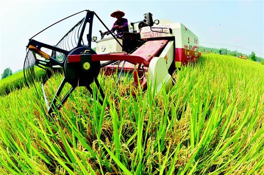襄陽(yáng)是全國(guó)重要的糧食主產(chǎn)區(qū),今年種植的308萬(wàn)畝中稻近日開(kāi)始收獲。(視界網(wǎng) 安富斌 攝)