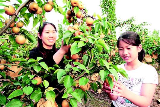 9月23日,游客在房縣生態(tài)小流域景和果園采摘香水梨。景和果園專業(yè)合作社在1000多畝撂荒地、荒山栽植蘋果、石榴、香水梨,今年全部進入盛果期,實現(xiàn)收入60余萬元。房縣通過綜合治理小流域,將荒山、荒坡地、撂荒地治理成梯平地,發(fā)展核桃、蜜橘、蘋果等特色干鮮果產業(yè),目前全縣水果種植面積達54萬畝,年實現(xiàn)銷售干鮮果收入近11億元,農民人均年收入達到9134元。