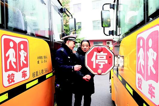 2月19日,枝江市公安局交警大隊(duì)正在對校車進(jìn)行“體檢”。春季開學(xué)在即,為了全面預(yù)防校車交通事故的發(fā)生,保障出行安全,枝江交警聯(lián)合教育局等相關(guān)部門,分批對全市76輛校車進(jìn)行全面檢查。(視界網(wǎng) 許俊富 攝)