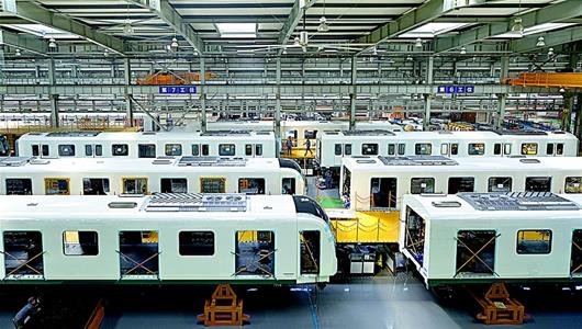湖北日?qǐng)?bào)訊 圖為:昨日,在總裝生產(chǎn)車間內(nèi)地鐵列車正在組裝中。當(dāng)日,在武漢市黃陂區(qū)中車武漢長(zhǎng)客公司,首列“武漢造”時(shí)速100公里A型地鐵車輛下線試跑。