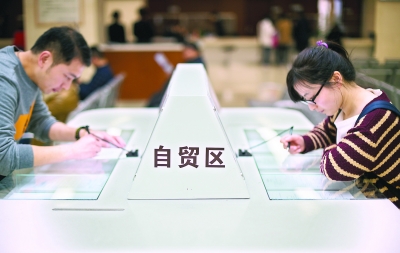 去年4月1日,中國(湖北)自由貿(mào)易試驗區(qū)武漢片區(qū)在東湖高新政務(wù)中心正式掛牌,已有不少市民陸續(xù)前往東湖高新政務(wù)中心自貿(mào)區(qū)轉(zhuǎn)臺辦理業(yè)務(wù) 記者任勇 攝(本報資料照片)