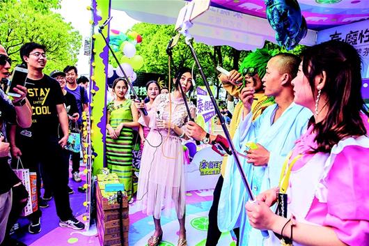 圖為:4月29日,直播節(jié)現(xiàn)場(chǎng),人氣主播線(xiàn)下與粉絲們互動(dòng)。(湖北日?qǐng)?bào)全媒記者 梅濤 通訊員 胡佳 攝)