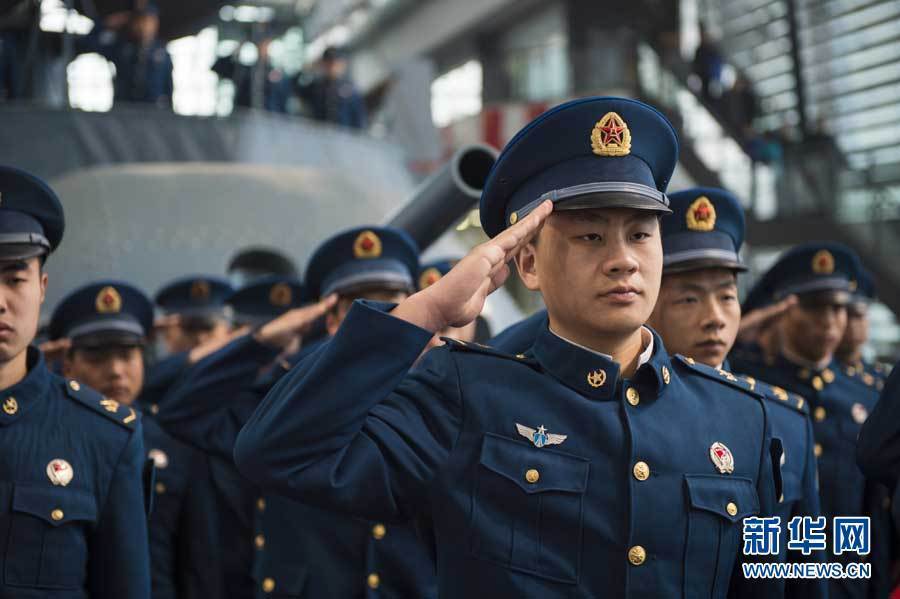 當(dāng)日上午10點(diǎn),在武漢市江夏區(qū)中山艦博物館,來自空軍駐漢某部的數(shù)十名官兵在中山艦艦首進(jìn)行默哀宣誓,并齊聲高唱《強(qiáng)軍戰(zhàn)歌》,場面莊嚴(yán)肅穆。