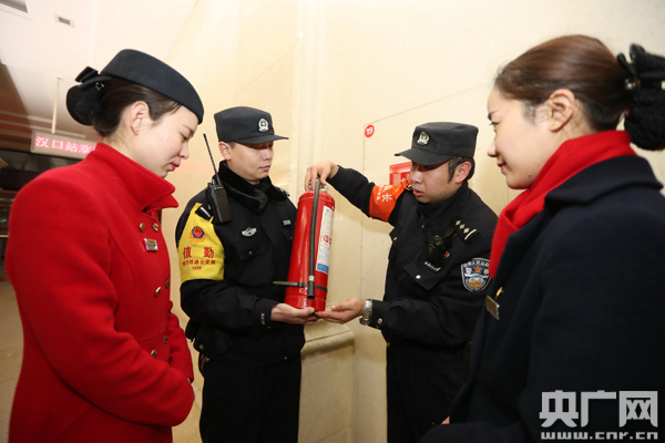 圖為:1月26日,漢口火車(chē)站,武漢鐵路民警在轄內(nèi)開(kāi)展消防宣傳。