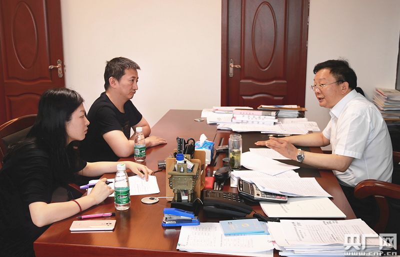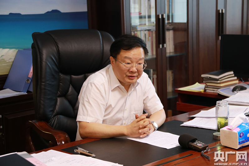圖為武漢市科技成果轉(zhuǎn)化局常務(wù)副局長(zhǎng)、武漢市科技局局長(zhǎng)李記澤正在接受采訪 央廣網(wǎng)記者黃炎秋 攝