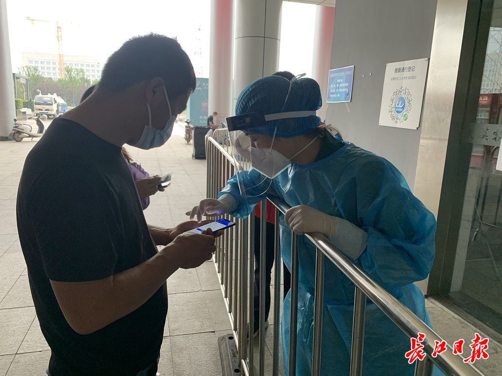 記者探訪多個新冠疫苗接種點發(fā)現(xiàn),居民全程自覺佩戴口罩,各接種點嚴(yán)格執(zhí)行掃碼測溫,在武漢市金銀潭醫(yī)院武漢客廳新冠疫苗臨時接種點,大廳門口排著長隊,指示牌上標(biāo)明:“本接種點按防控要求入內(nèi),一人一碼。”工作人員要求每人都掃碼測溫,即使健康碼和行程卡都無異常,工作人員也要詢問近期是否去過中高風(fēng)險地區(qū),審核完成后接種人員方可進入一樓等候區(qū)。