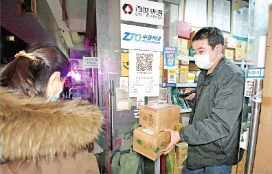 快遞站工作人員戴好口罩,將快遞送到市民手中。長江日報記者詹松 攝