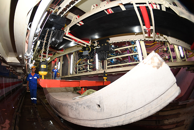 5月26日上午,長沙地鐵5號線華雅站建設(shè)現(xiàn)場,施工人員在操作盾構(gòu)機。當(dāng)天,5號線在華雅站新增一臺盾構(gòu)機,這是5號線全線第9臺下井的盾構(gòu)機。目前,5號線18個車站中已有2個車站完工,計劃2020年開通。湖南日報記者 田超 攝