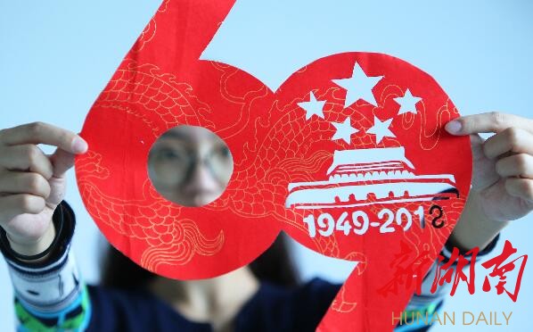9月27日,大學生展示創(chuàng)作的慶國慶剪紙作品。近日,南華大學舉辦“剪紙迎國慶”主題活動,邀請剪紙藝人來校指導(dǎo)大學生剪紙藝術(shù)愛好者創(chuàng)作,迎接中華人民共和國成立69周年。