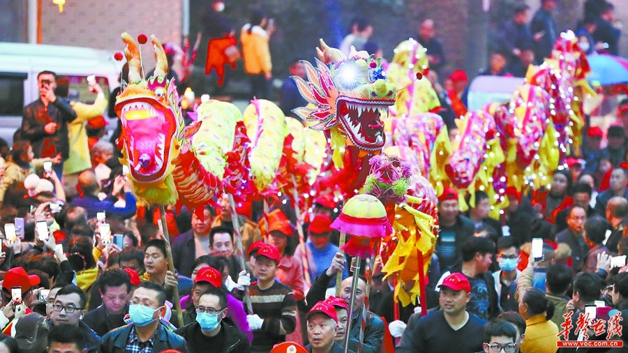 3月13日 衡陽(yáng)縣界牌鎮(zhèn),居民舞龍游街慶!盎馃艄(jié)”。當(dāng)天是農(nóng)歷二月初七,界牌鎮(zhèn)舉行一年一度的“火燈節(jié)”民俗活動(dòng),祈求風(fēng)調(diào)雨順、國(guó)泰民安。