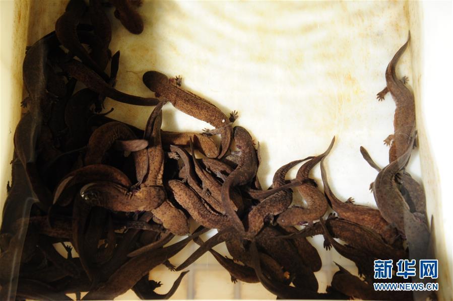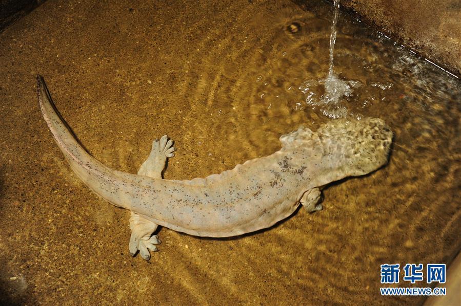 3月16日在湖南省大鯢救護中心拍攝的在野外獲救的一尾娃娃魚。 新華社記者 明星 攝 圖片來源:新華網(wǎng)