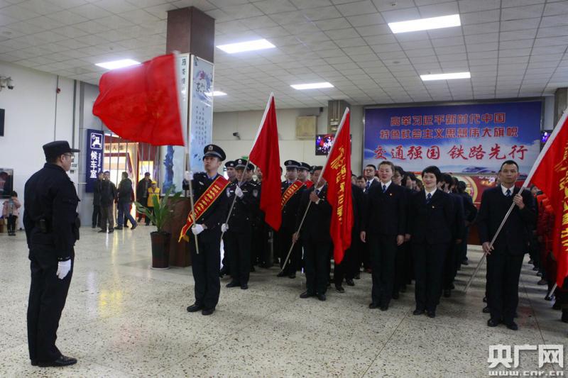 衡陽站派出所教導(dǎo)員胡宇輝組織青年值勤隊和黨員先鋒隊民警莊嚴宣誓“忠誠盡責(zé)、捍衛(wèi)春運;決戰(zhàn)用我,用我必勝,誓保平安”,設(shè)立青年執(zhí)勤隊執(zhí)勤專崗,制作春運宣傳欄,組織青年民警和黨員民警的先鋒作用,為旅客普及安檢查危知識、向旅客贈送“福”字等。