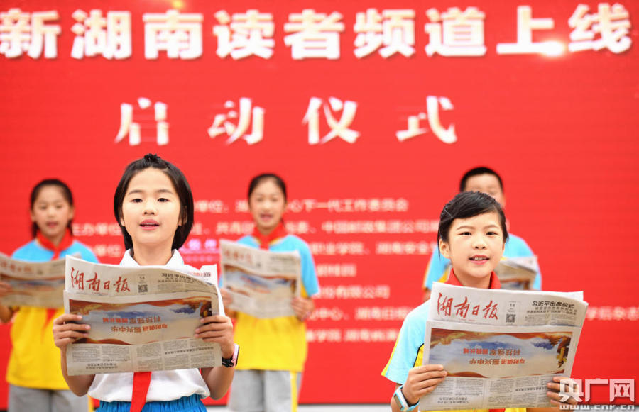 啟動儀式現(xiàn)場,來自長沙清水塘第二小學(xué)和長沙師范學(xué)校附小的小學(xué)生們齊聲朗誦(央廣網(wǎng)發(fā) 湖南日報供圖)