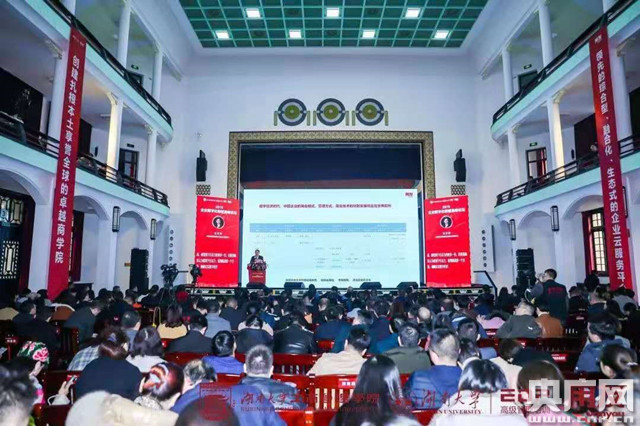 論壇上,湖南大學(xué)工商管理學(xué)院院長(zhǎng)馬超群致辭,對(duì)湖南大學(xué)以及工商管理學(xué)院進(jìn)行了簡(jiǎn)要介紹。他表示希望通過(guò)與優(yōu)秀企業(yè)合作,共同推動(dòng)中國(guó)商學(xué)以及企業(yè)轉(zhuǎn)型發(fā)展。