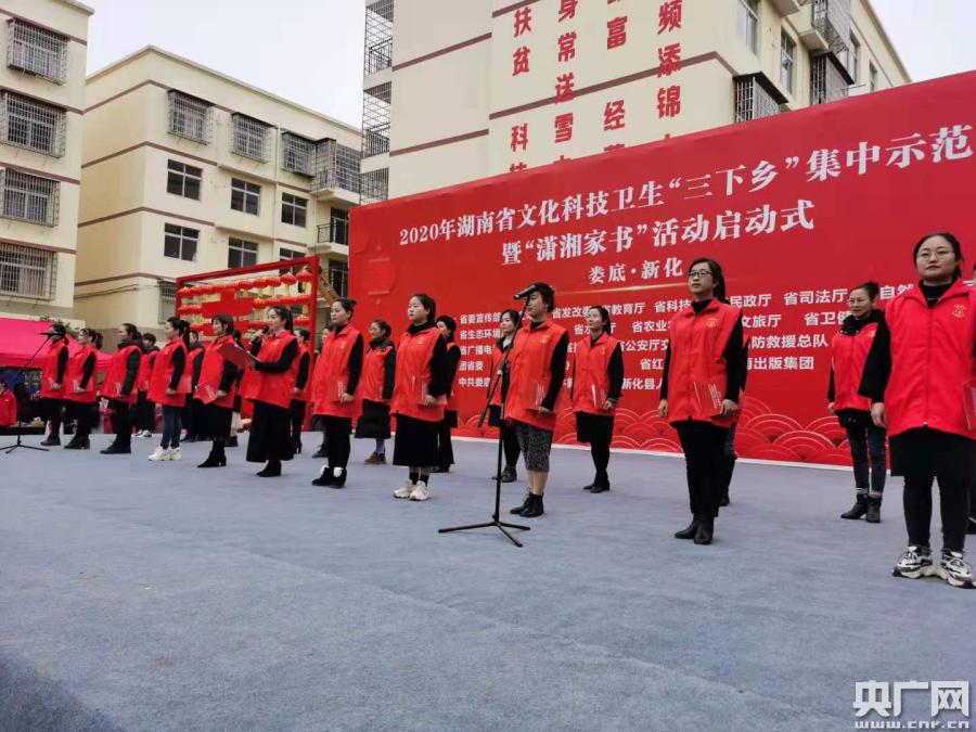 央廣網(wǎng)長沙1月9日消息(記者鄧文輝)1月8日,2020年湖南省文化科技衛(wèi)生“三下鄉(xiāng)”集中示范活動暨“瀟湘家書”活動啟動儀式,在新化縣槎溪鎮(zhèn)朝陽村易地扶貧安置點舉行。據(jù)了解,湖南省文明委決定,今年一季度在全省組織開展“瀟湘家書”活動。
