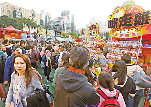 一連7日的維園年宵昨日開鑼,不少攤檔忙于準備;亦有花檔及干貨檔索性偷偷提前開檔,為迎合雞年,不少攤檔以“雞”作主題。逛年宵已成為港人每年迎接新年必備節(jié)目之一,為期7日的維園年宵昨日開鑼,不少市民昨日已提早入場湊熱鬧。
