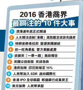 2016年香港商界最關(guān)注十件大事:“深港通”開通居首