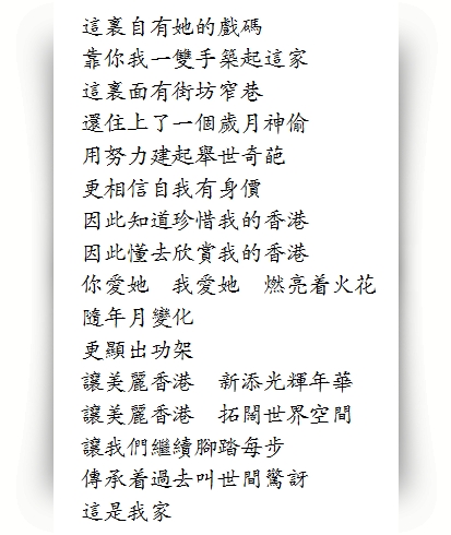 當天記者會首次公布香港特區(qū)成立20周年主題歌曲《香港·我家》。