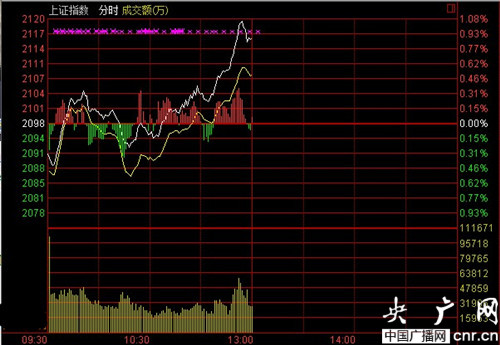 午盤:滬指漲0.87%重返2100點 白酒股領(lǐng)漲