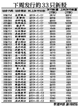 IPO重啟后,A股市場迎來了有史以來最密集的新股發(fā)行潮,獲得證監(jiān)會放行的新股共有50只,這些新股均在1月8日至21日的10個交易日里完成申購,平均每天5只新股發(fā)行。本周,剔除暫緩發(fā)行的奧賽康外,申購的新股共有7只,而這僅是本輪IPO重啟后的“熱身”。下周A股市場將迎來IPO史上最大發(fā)行潮,33只新股洶涌而至。1月17日當(dāng)天,更有9只新股密集發(fā)行;在17日發(fā)行的9只新股中,本輪發(fā)行潮中“塊頭”最大、募集資金最多的陜西煤業(yè)也將亮相,該公司一家就要募集上百億資金。