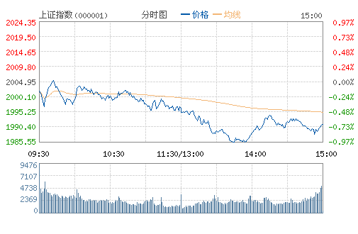 滬指跌0.68%失守2000點(diǎn) 成交量創(chuàng)14個(gè)月來(lái)新低