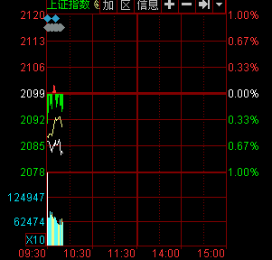 新華網(wǎng)消息 今日早盤,兩市低開低走,銀行、券商、保險等權重股集體不作為,大盤震蕩下行,滬指逼近2080點,截至發(fā)稿,滬指報2083.32點,跌幅0.76%,深成指報7385.56點,跌幅0.88%,創(chuàng)業(yè)板報1370.38點,漲幅0.20%。