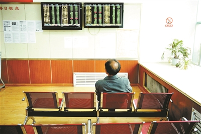 偌大的營業(yè)廳里看盤的股民寥寥無幾