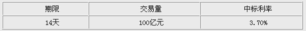 中國(guó)經(jīng)濟(jì)網(wǎng)北京8月21日訊(記者 韋偉)今日,央行以利率招標(biāo)方式開(kāi)展為期14天100億正回購(gòu)操作,中標(biāo)利率為3.70%。
