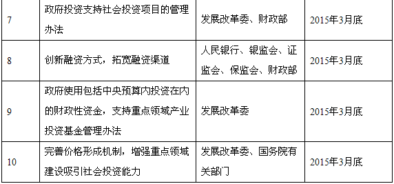 創(chuàng)新重點領(lǐng)域投融資機制對穩(wěn)增長、促改革、調(diào)結(jié)構(gòu)、惠民生具有重要作用。各地區(qū)、各有關(guān)部門要從大局出發(fā),進一步提高認識,加強組織領(lǐng)導(dǎo),健全工作機制,協(xié)調(diào)推動重點領(lǐng)域投融資機制創(chuàng)新。各地政府要結(jié)合本地實際,抓緊制定具體實施細則,確保各項措施落到實處。國務(wù)院各有關(guān)部門要嚴(yán)格按照分工,抓緊制定相關(guān)配套措施,加快重點領(lǐng)域建設(shè),同時要加強宣傳解讀,讓社會資本了解參與方式、運營方式、盈利模式、投資回報等相關(guān)政策,進一步穩(wěn)定市場預(yù)期,充分調(diào)動社會投資積極性,切實發(fā)揮好投資對經(jīng)濟增長的關(guān)鍵作用。發(fā)展改革委要會同有關(guān)部門加強對本指導(dǎo)意見落實情況的督促檢查,重大問題及時向國務(wù)院報告。