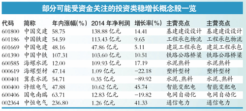 這意味著,未來投資類穩(wěn)增長概念股可能受到資金的追捧。而記者對比發(fā)現(xiàn),在投資領(lǐng)域,A股市場主要體現(xiàn)為“鐵工基”概念股。因此,有專業(yè)人士建議,在股價回調(diào)之際,投資者不妨適當(dāng)關(guān)注“鐵工基”概念,重點為基建、建材和電力等領(lǐng)域。