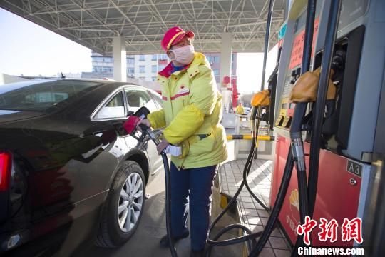 山西太原,加油站工作人員正在給車輛加油!?jiān)啤z
