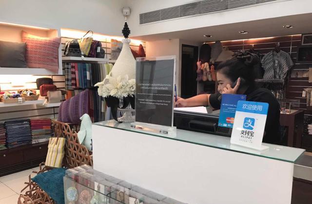 記者發(fā)現(xiàn)目前支付寶已經(jīng)覆蓋了素萬那普機(jī)場的所有免稅店,中國游客只需打開支付寶付款,就可以結(jié)匯、結(jié)算。據(jù)悉,未來機(jī)場退稅,落地簽,機(jī)場信息引導(dǎo)等,都將有可能通過支付寶實現(xiàn)。