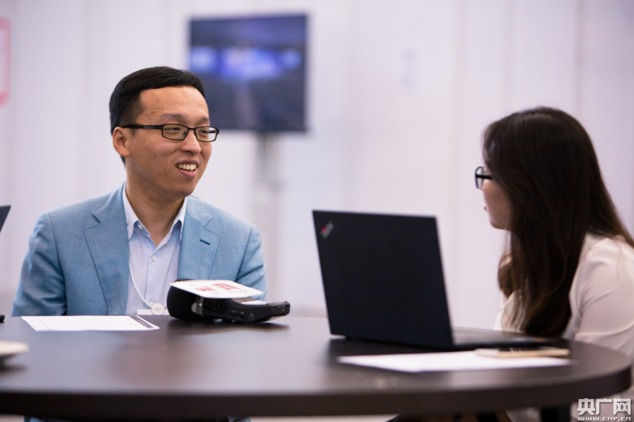 圖為第四范式創(chuàng)始人、CEO戴文淵在接受央廣網(wǎng)記者采訪(央廣網(wǎng)記者 李帥攝)