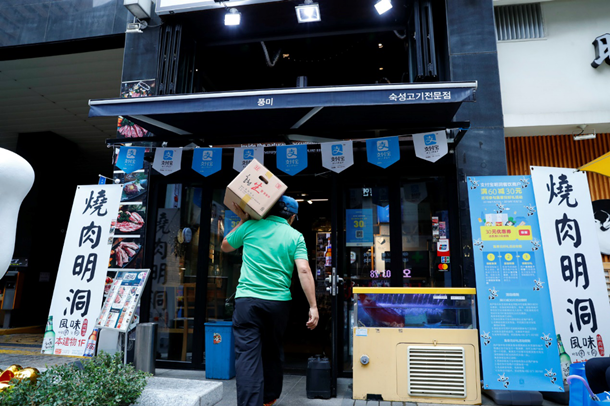 韓國明洞一家烤肉店的老板樸女士表示,中國國慶假期期間,自己的生意比平時好了六七倍!白詮慕尤肓酥Ц秾氁院,來我這里的中國游客幾乎全都用手機付款。假期結(jié)伴旅行的朋友很多,人均消費也比平日里高不少!